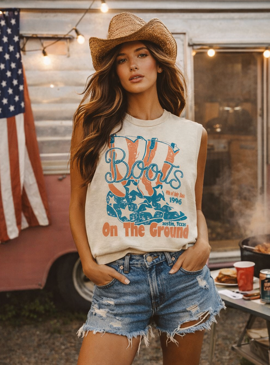 Boot on the Ground Austin Bash vintage 80's Cropped boxy muscle top