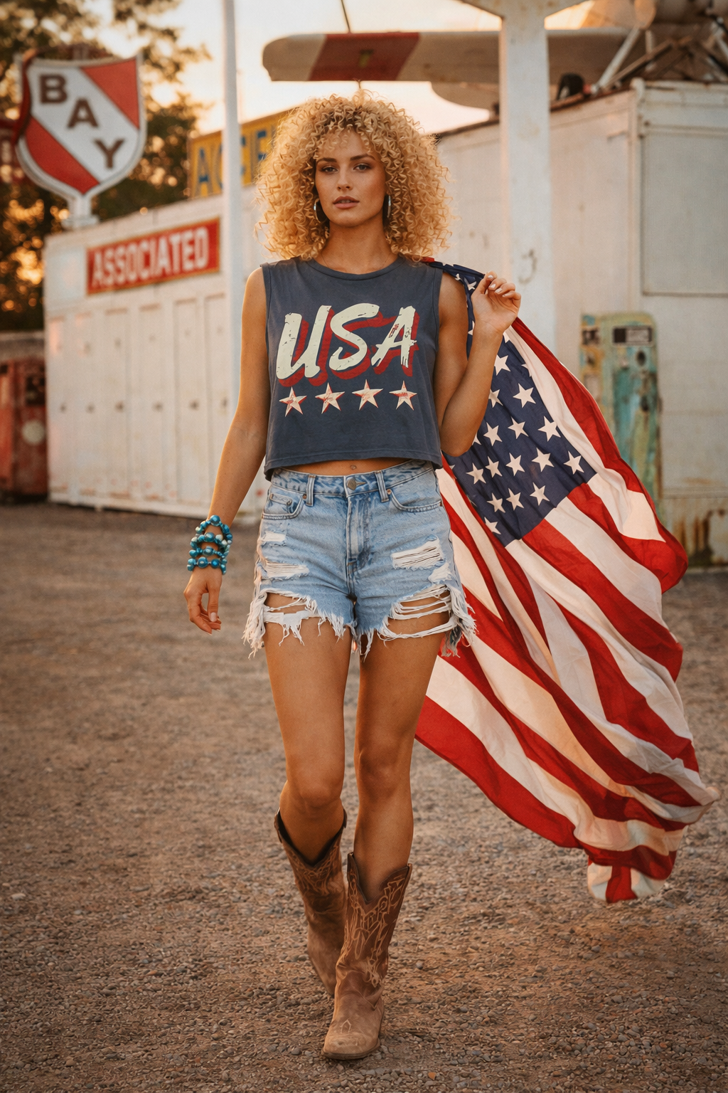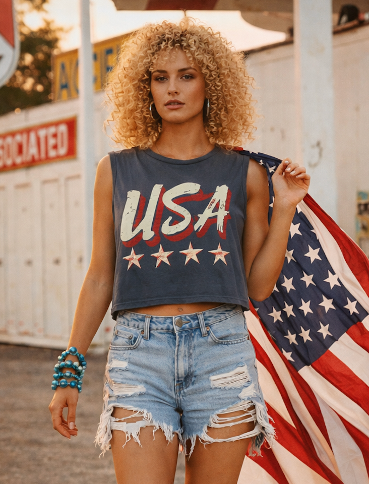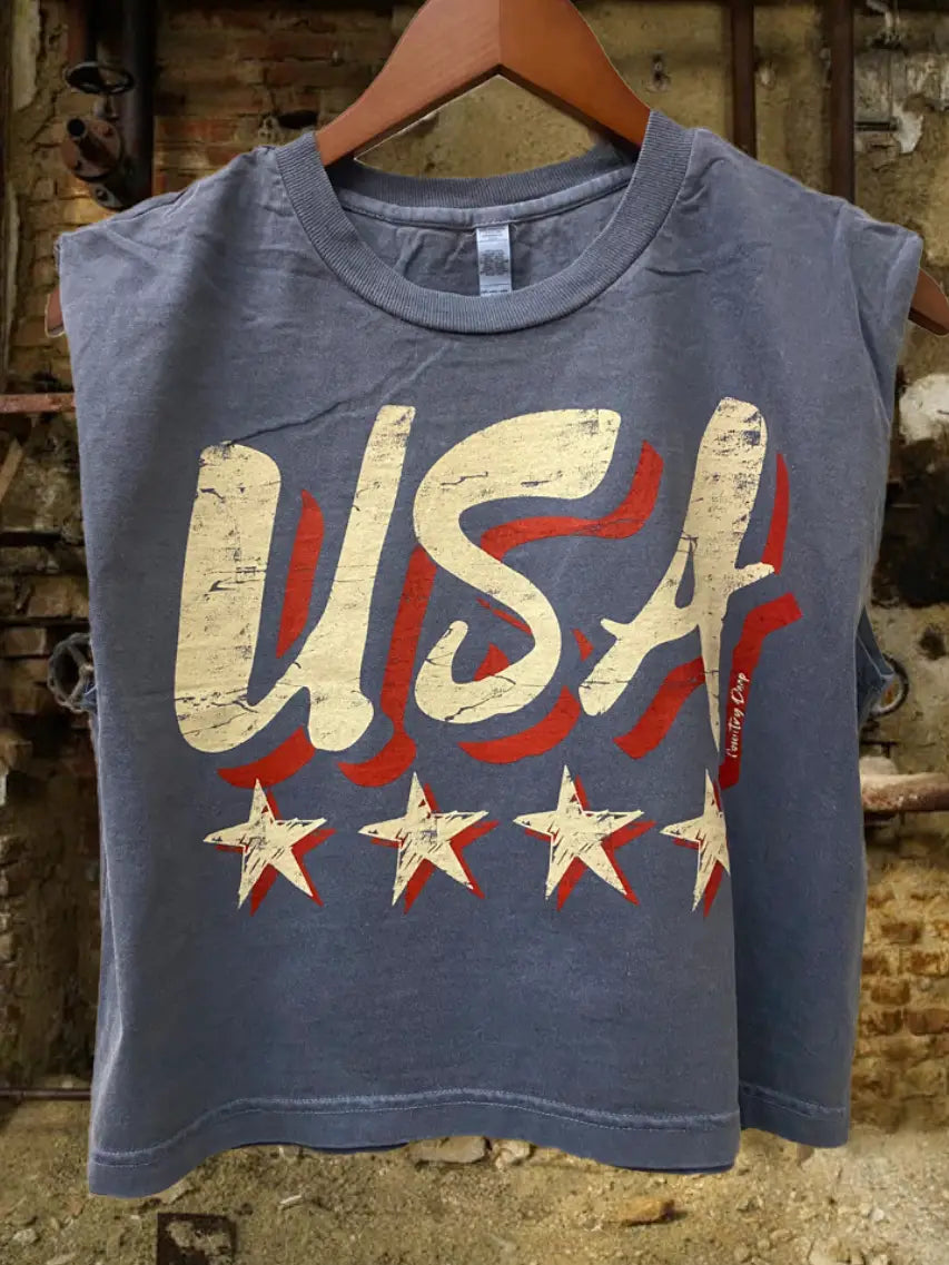 Country Deep Miss USA stars Vintage Boxy Cropped muscle top