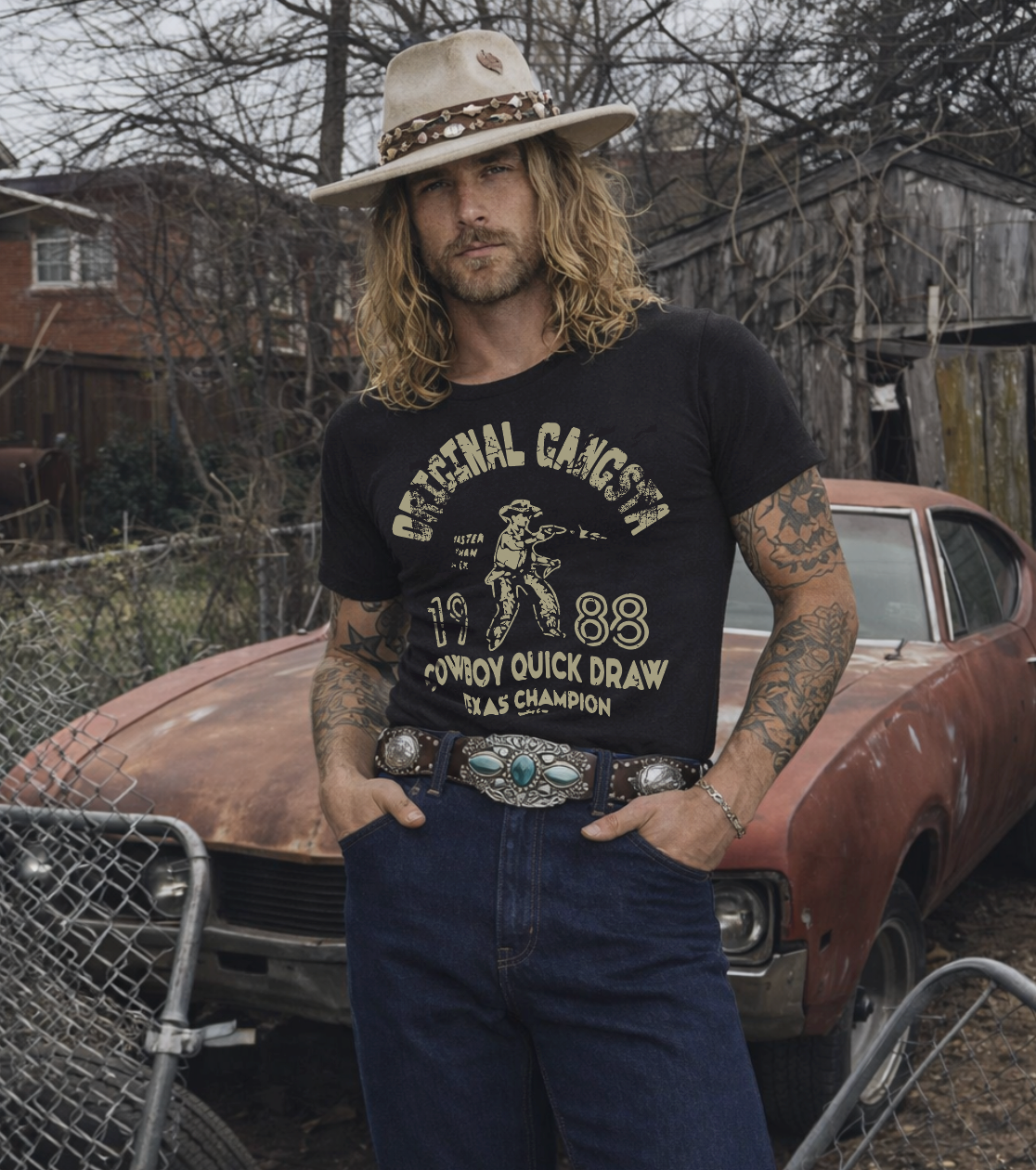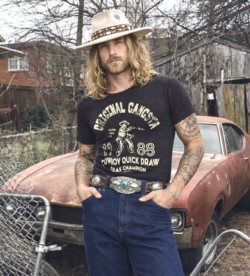 Country Deep Original Gangsta Acid was Relaxed T shirt in faded washed out black. A tad bit larger than normal with bigger sleeves