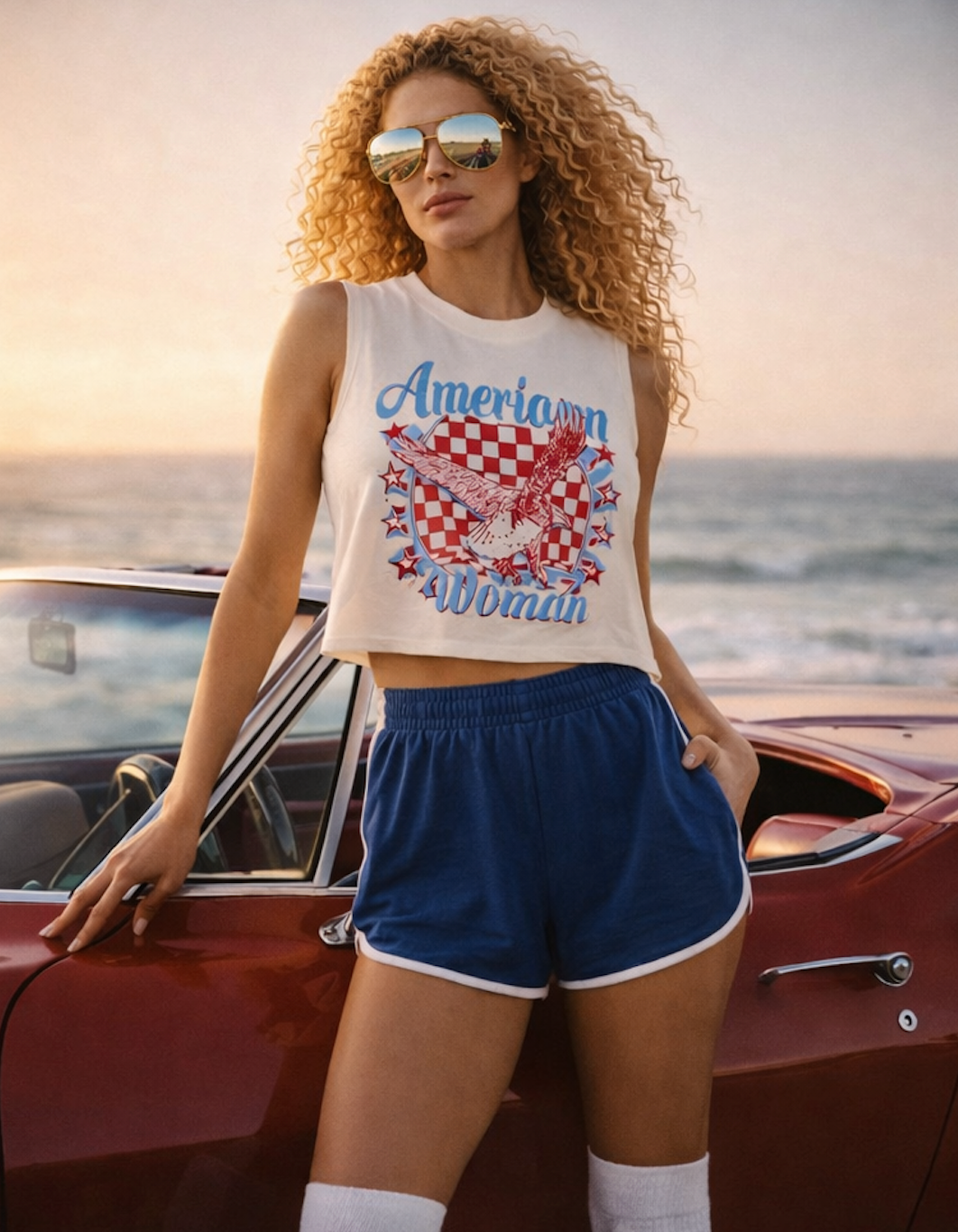 Country Deep American Woman Muscle Crop top
