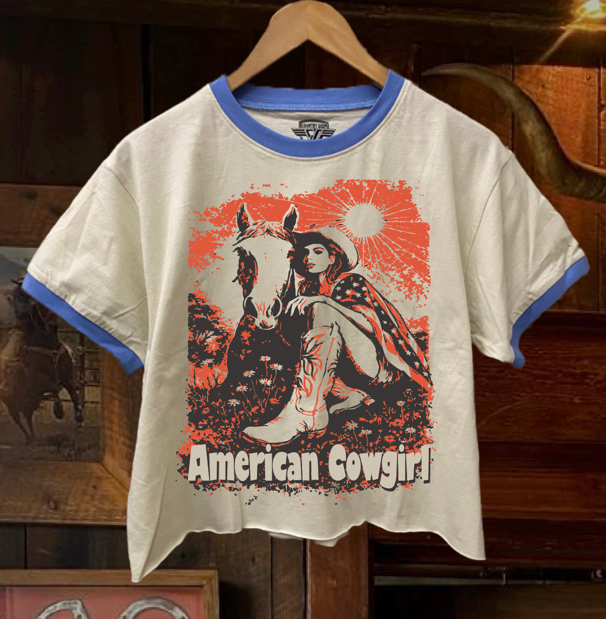 American Cowgirl ringer Cropped T- shirt available in natural color