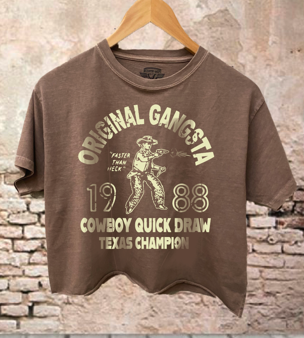 Country Deep Original Gangsta 80's throwback Relaxed Cropped T- shirt available in Natural color