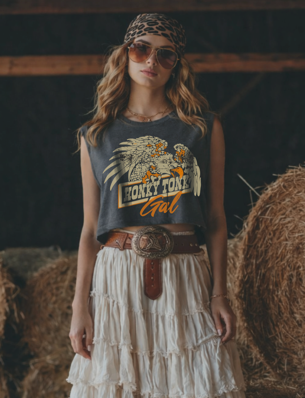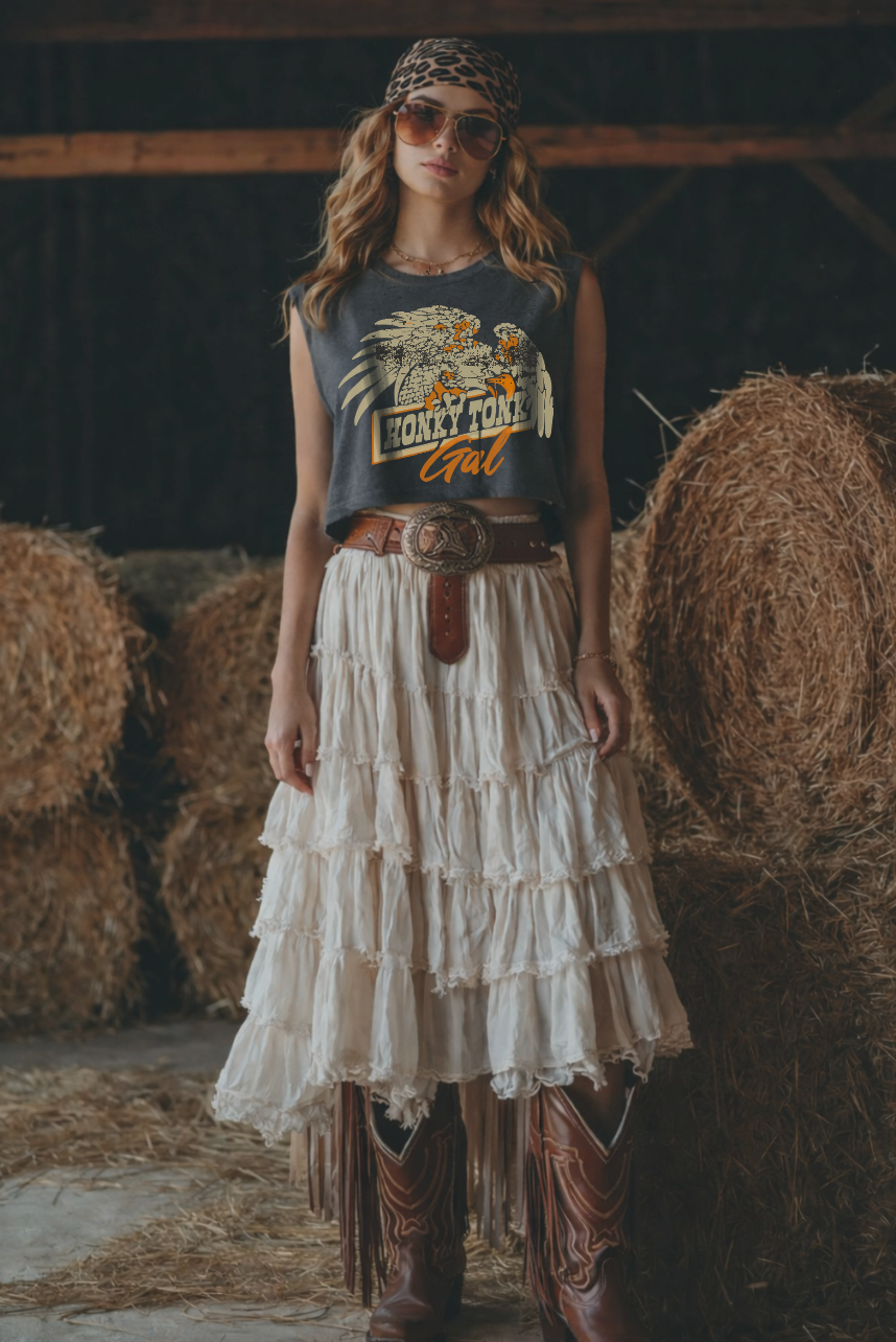 Country Deep Honky Tonk Gal vintage Boxy Cropped muscle top