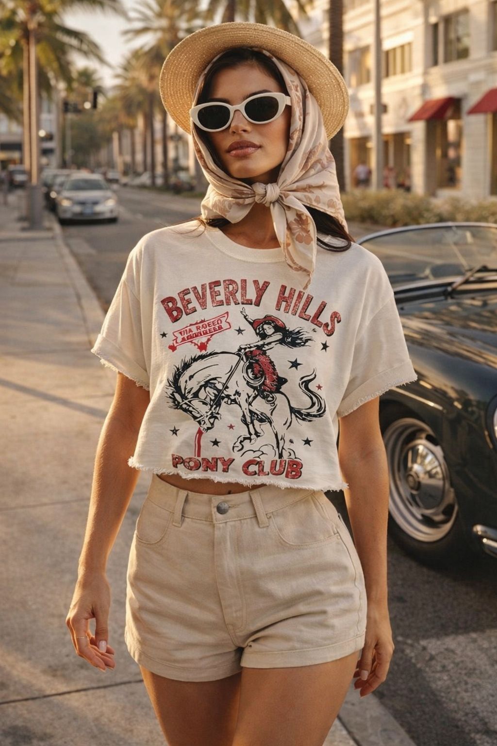 Beverly Hills Pony Club Relaxed 1980's throwback Cropped T- shirt available in Natural color