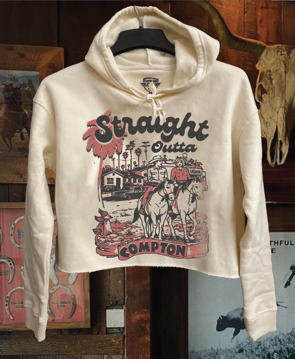 Country Deep Straight outta Compton cropped Hoody in natural bone color