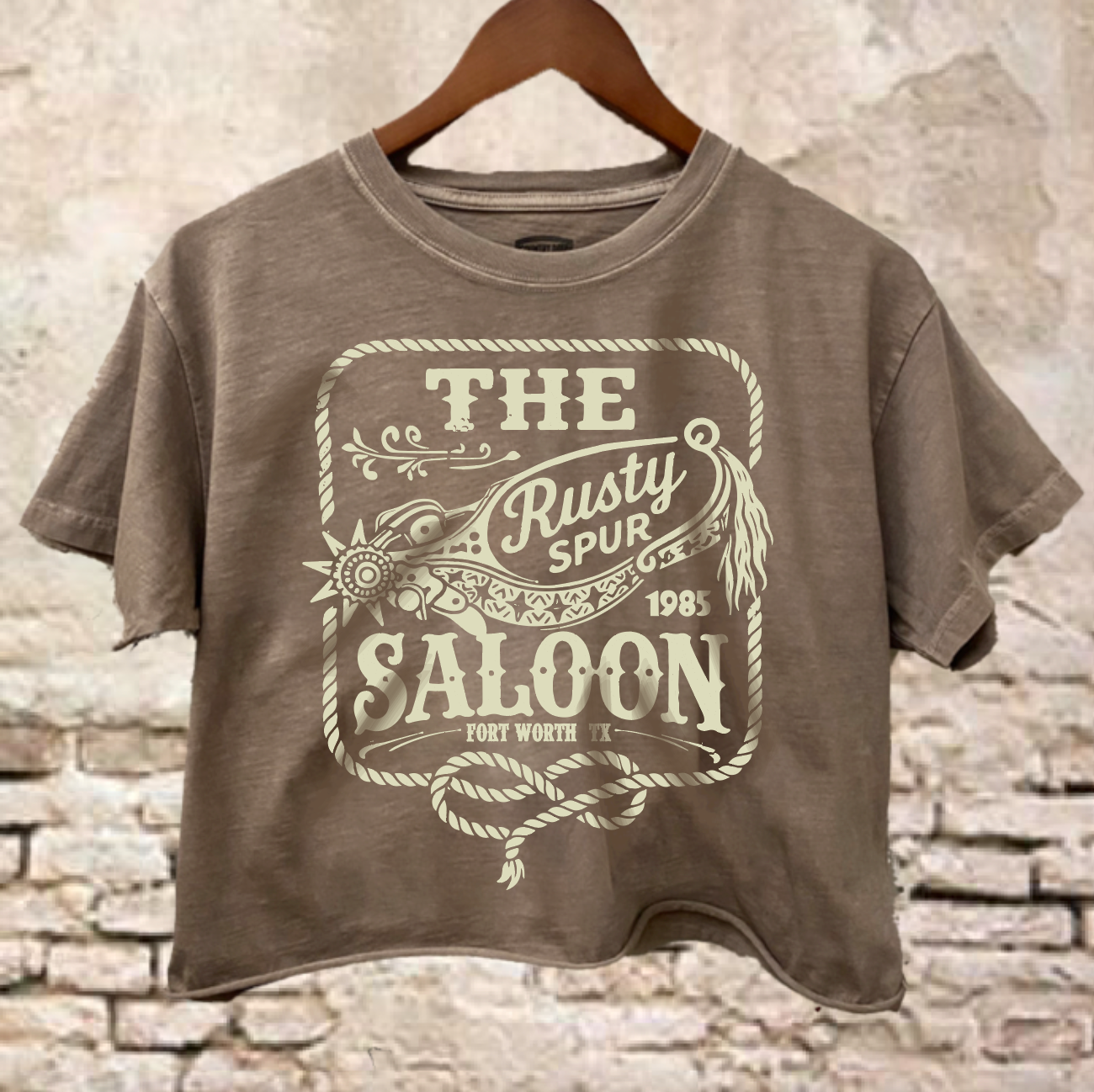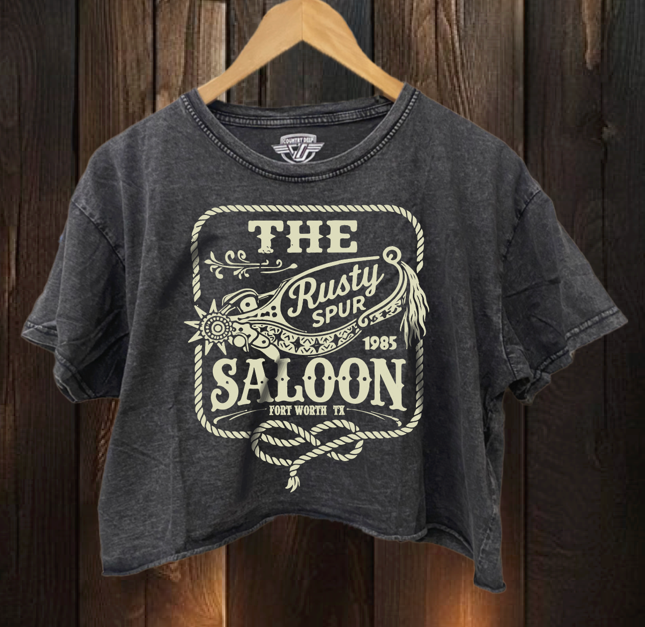 The Rusty Spur Saloon vintage Jersey crop tee slides right into streetwear style for Summer and Winter.. With a relaxed body, and a butter soft fabric.