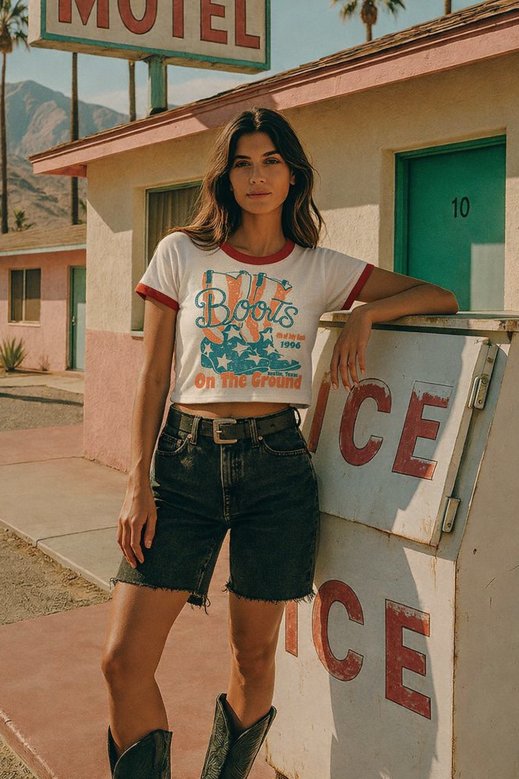 Boots on the Ground Austin Bash 1990's ringer Cropped T- shirt available in natural color
