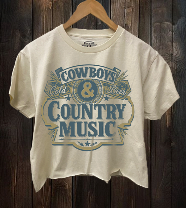 Cowboy, Cold Beer, and Country Music Cropped T- shirt available in natural color