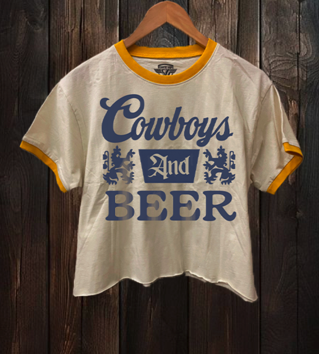 Cowboys & Beer Logo ringer Cropped T- shirt available in natural color