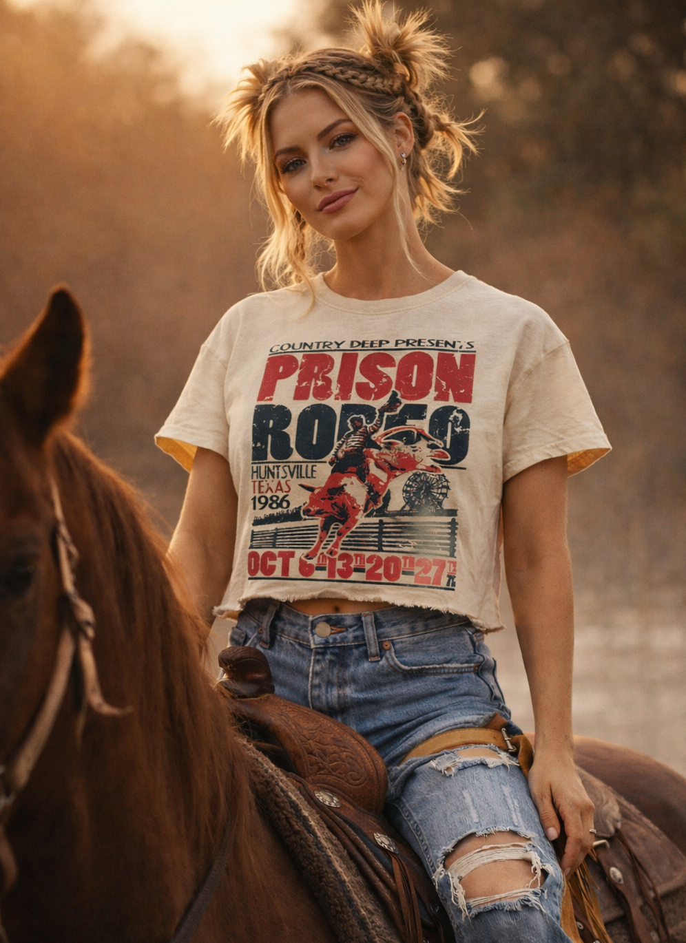 Prison Rodeo Relaxed 1980's throwback Cropped T- shirt available in Natural color