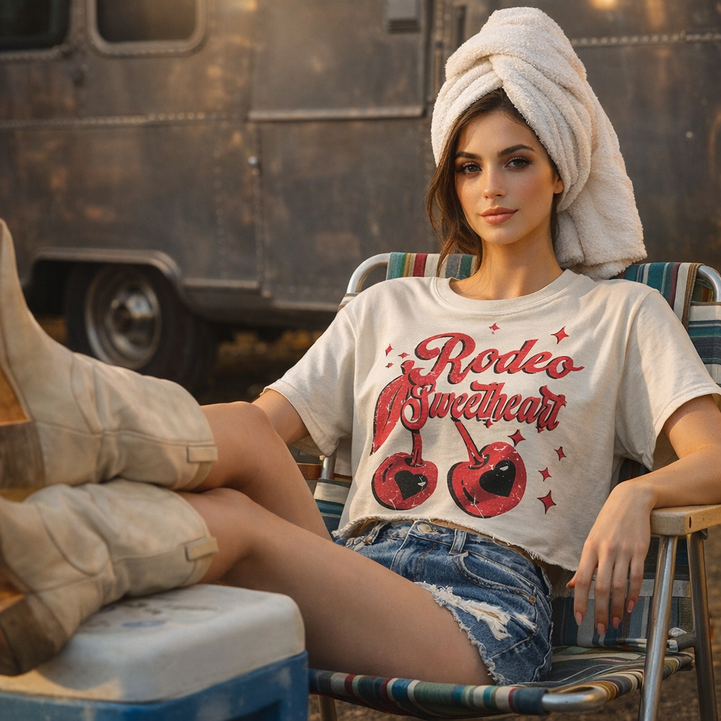Rodeo Sweetheart  Cropped T- shirt available in Natural color