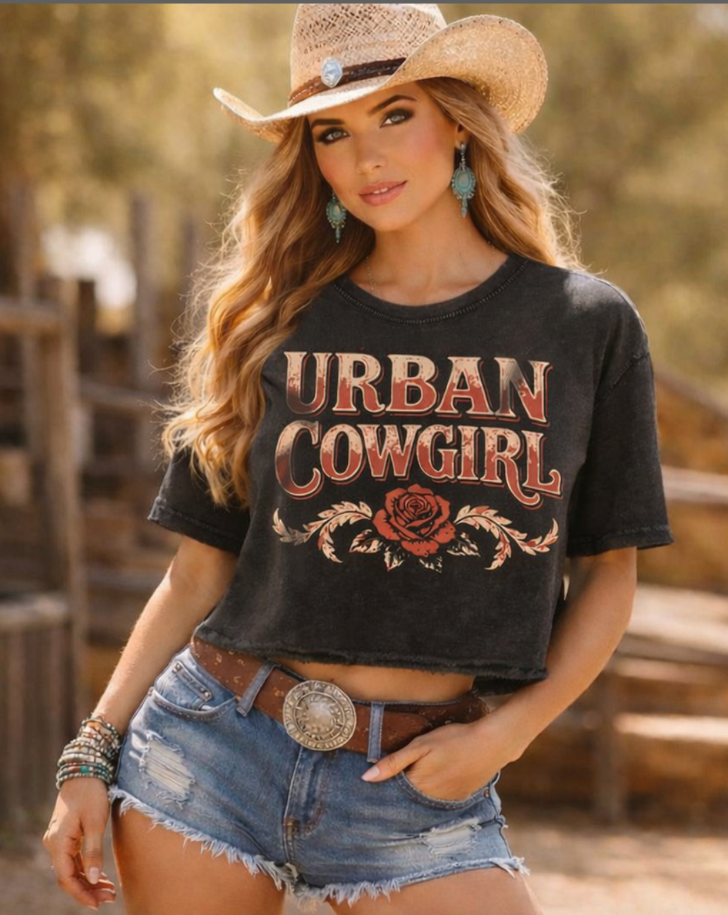 Urban Cowgirl Jersey crop tee slides right into streetwear style for Summer and Winter.. With a relaxed body, and a butter soft fabric.